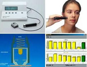 基于光谱吸收的原理(RGB),通过测定特定波长的光照在人体皮肤上后的反射量来确定皮肤中黑色素的含量。仪器探头的发射器发出波长分别为568nm、660nm、和880nm三种波长的光照射在皮肤表面,接受器测得皮肤反射的光。由于发射光的量是一定的,因此就可以测出被皮肤吸收的光的量,测出皮肤黑色素的含量。