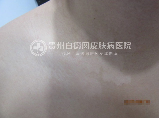 患者李同学今年正读大三,本来是准备考研奋斗的年纪,却因为一个意外打乱。一次李同学打完球洗澡的时候突然发现颈胸部出现一大片白斑,一下子蒙了,从来没有见过这种疾病的李同学赶紧上网查资料,经过一番搜索对比怀疑是白癜风。犹豫了两天后决定到医院看看,便预约了贵州白癜风皮肤病医院的李顺柏主任就诊。