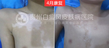 病案信息 姓名 :李林(化名) 性别:男 年龄:45 主诉: 左前胸白斑30年。 治疗前胸部...