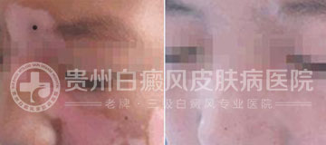 【患者病历】 基本信息 :张同学,男,9岁,贵州六盘水人 症状表现: 脸部出现一大块白斑,中间有颗痣(晕痣) 既往史 :无肝肾功能异常,无传染病史、无手术史,有外伤史,有同形反应 检查: 1、智能AI成像检测系统:面部大面积片状白斑,白斑中间有颗痣(晕痣