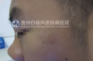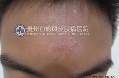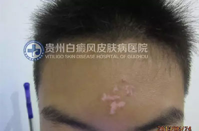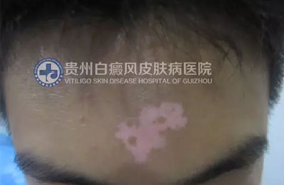 经过磁波塌渍及308巩固治疗后,患者额头的白斑也消失