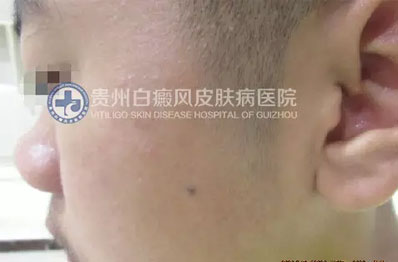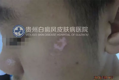 现病史:1年前无明显诱因出现面部白斑,“300医院及某皮肤病医院”诊断为“白癜风”,给予外用、口服(具体不详)无效,遂来求治。