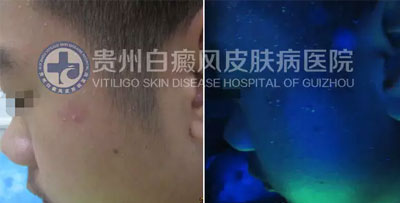 终治果,在wood灯下,原额头及面部均不见白斑