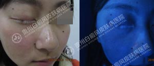 主诉:右眼睑、面部白斑三年余,加重半年。