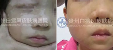 病案信息 姓名 :徐悦(化名) 性别:女 年龄:5 主诉 :面部、颈部白斑3年,加重1年。 现病史: 患儿3年前右眼内眦出现黄豆大小白斑,境界不清,逐渐扩大,扩散至前额、右眼周、鼻翼、右鼻唇沟、右面颊、后颈、右耳后、后背。曾在医院诊断为“白癜风”,给予