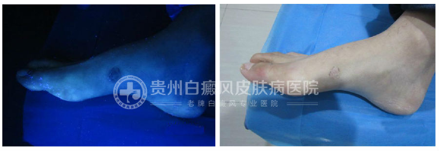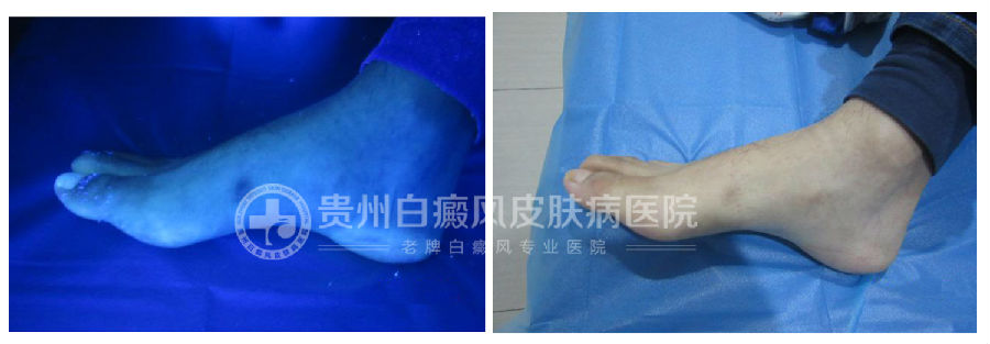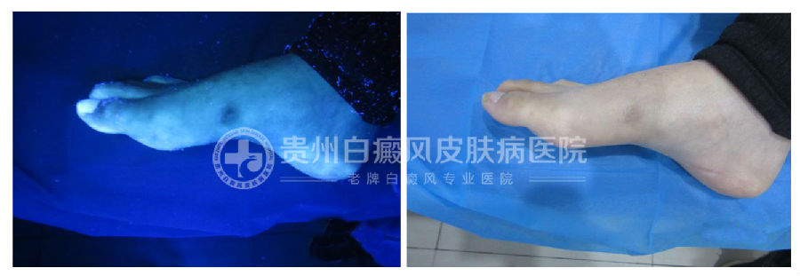 治疗方案:考虑到郭旭的白斑是在发展期,医生决定用综合强化治疗+内服药+308准分子光疗技术+磁波塌渍治疗,激活机体酪氨酸酶活性,加速生成黑色素,增强急停免疫能力,恢复皮肤的本色。
