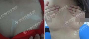 患者基本资料 姓名 :李霞(化名) 性别:女 年龄:24 住址:铜仁思南 主诉: 右腋下白斑7年,扩散2年。 现病史 :7年前无明显诱因右腋下白斑,在常州某医院诊断为“白癜风”,给予中药汤剂口服2月见效,因怀孕而停止治疗,后经网络查询来到贵州白癜风皮肤病医
