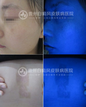 江女士1年多前胸部、面部突发白斑,起初只是一小块斑片,未重视,生活饮食习惯也没有改变。一个月后胸部的白斑不断扩大,越来越明显,这引起了江女士的恐慌,后来到一家皮肤病医院检查,医生诊断为白癜风,并给予丹参、强的松、复合维生素B,肌注“胸腺五肽”,物理红蓝光治疗2次,但是坚持治疗了几个月后白斑还是没有消除。