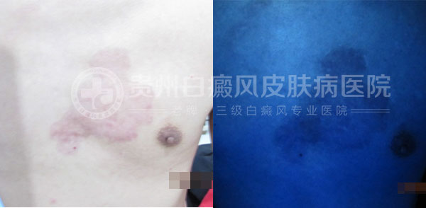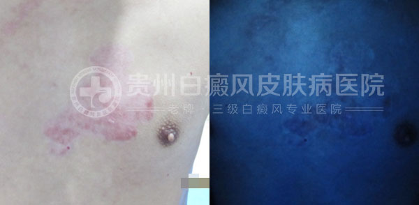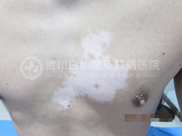 治疗前胸部白斑边缘清晰,病情处于稳定期