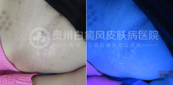 病情稳定后采取黑色素细胞培植手术治疗,七天后拆敷料可见白斑基本消失