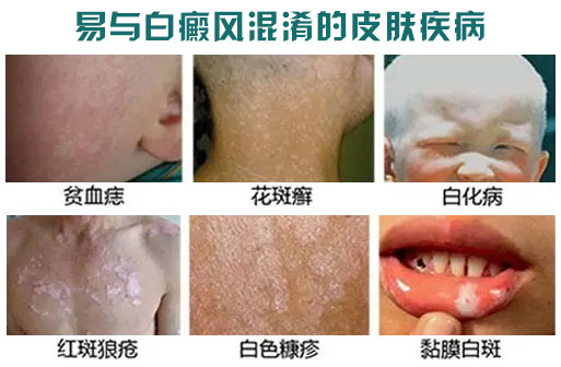 需要注意的是白癜风在早期阶段,白斑不是特别明显,容易与其他白斑性的皮肤病,如贫血痣、无色素痣、白化病、花斑癣、白色糠疹等混淆,这也是众多早期白癜风被误诊的诱因所在。